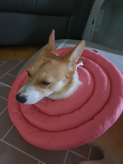 - 편히 잘 수 있도록 도넛형이나 목쿠션형으로 교체해주는 보호자도 많아요